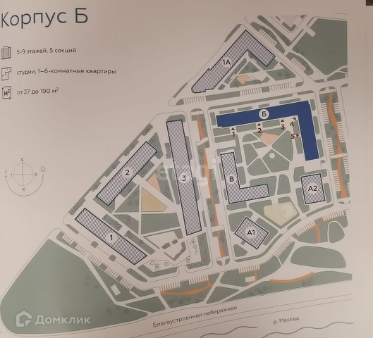 Студия находится на комфортном (не низком и при этом видовом) 7 этаже в разноуровневом корпусе Б, в 9-этажной секции. На этаже всего 6 квартир.