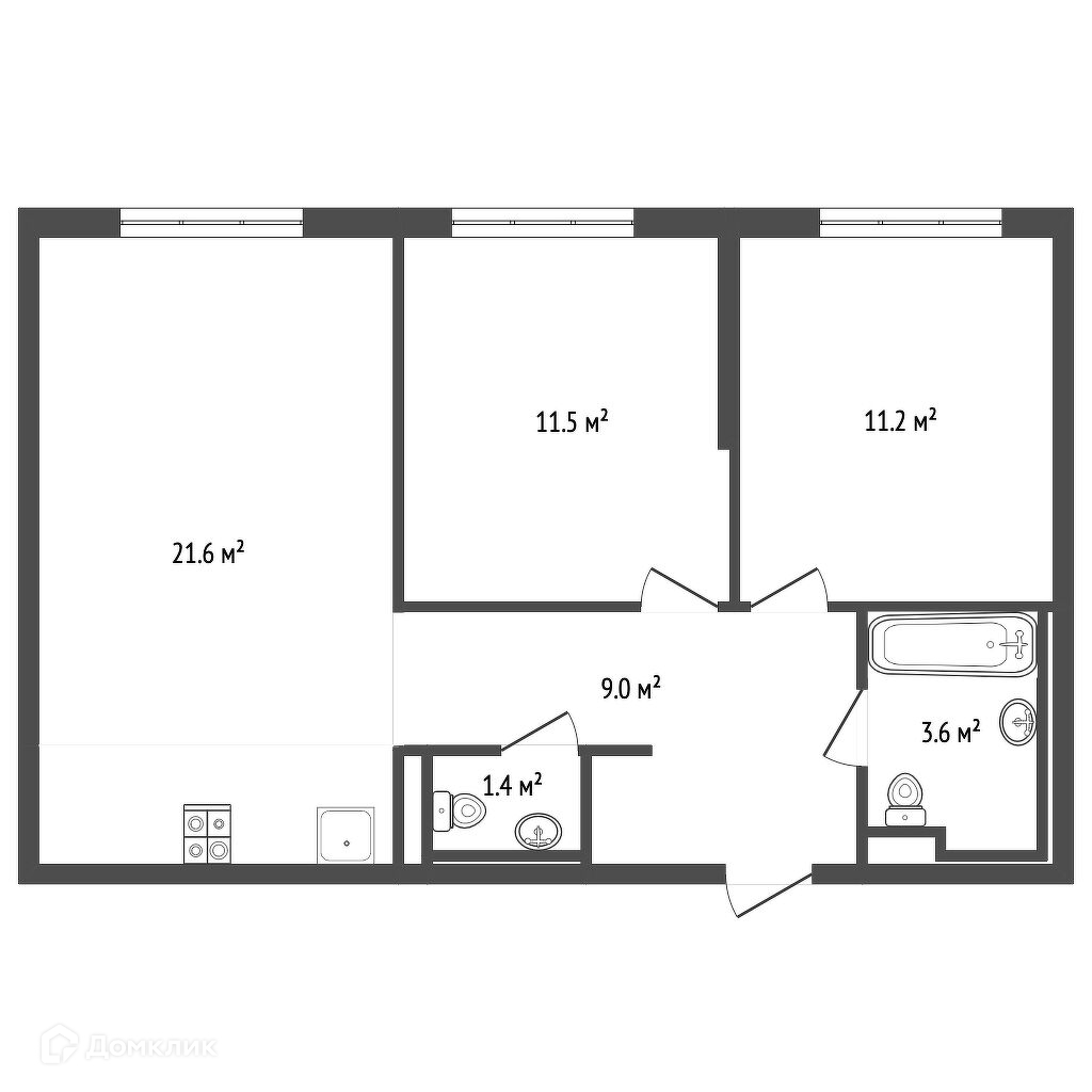 Отличная и функциональная планировка линейного типа. Большая кухня, две изолированные спальни, просторная ванная комната и гостевой санузел.
