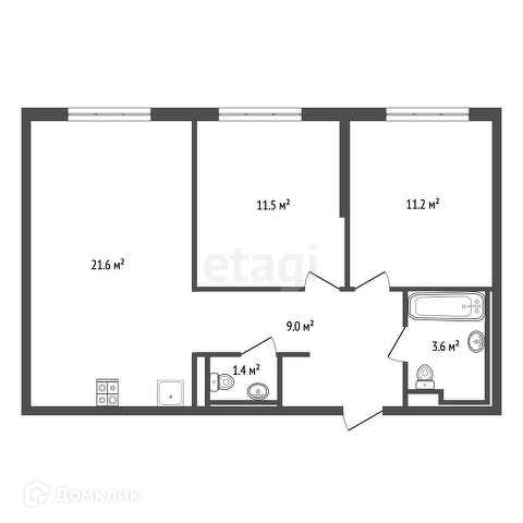 Общая площадь 58.3 м2