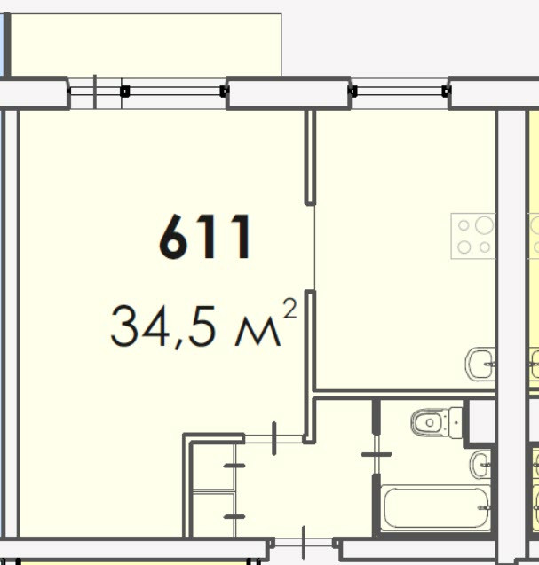 Общая площадь 34.5 м2