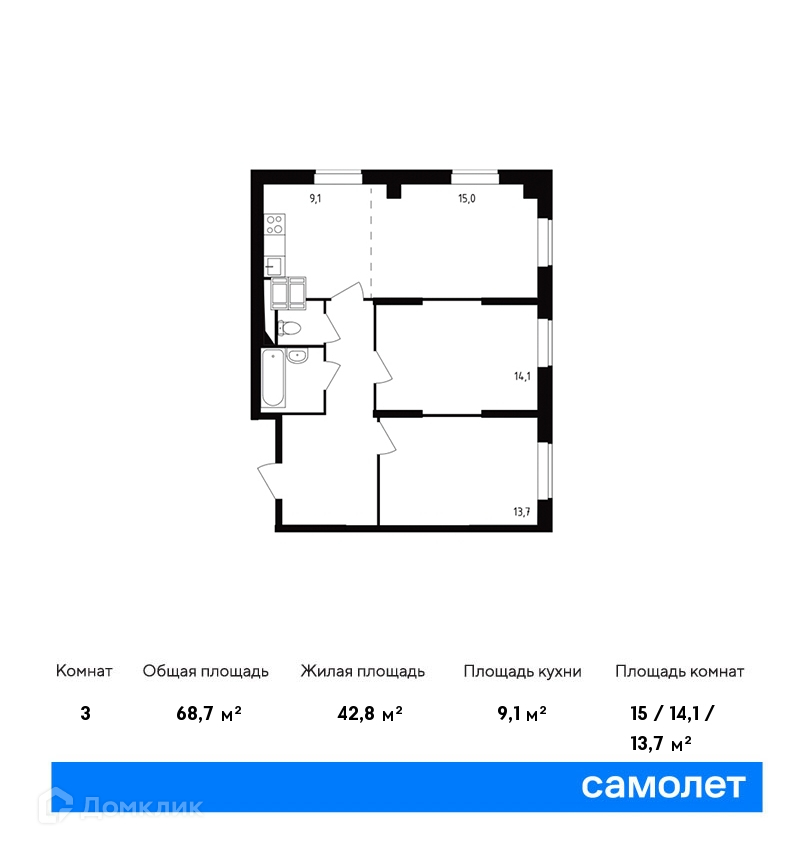 Общая площадь 68.7 м2