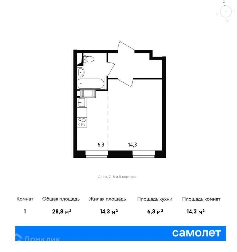 Общая площадь 28.4 м2