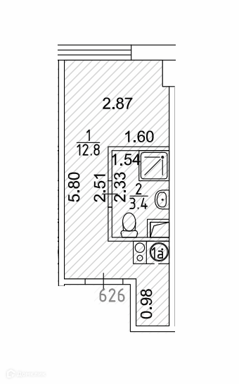 Общая площадь 16.8 м2
