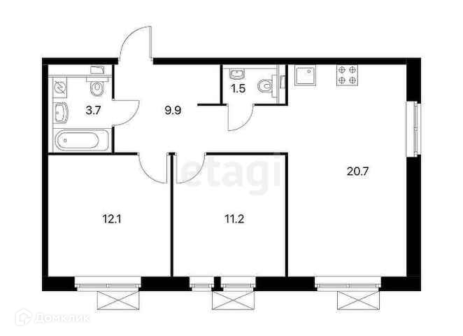 Общая площадь 59.1 м2