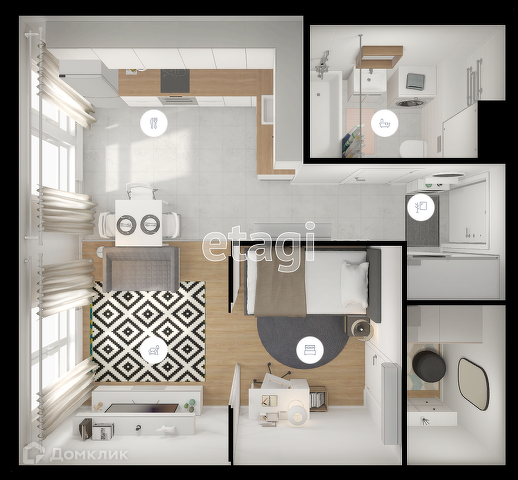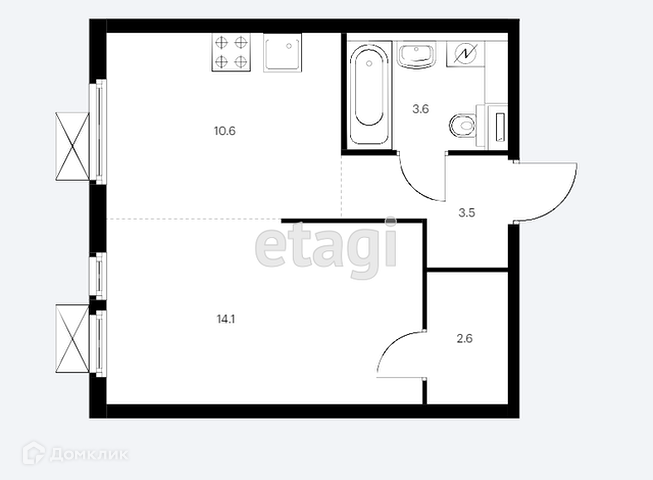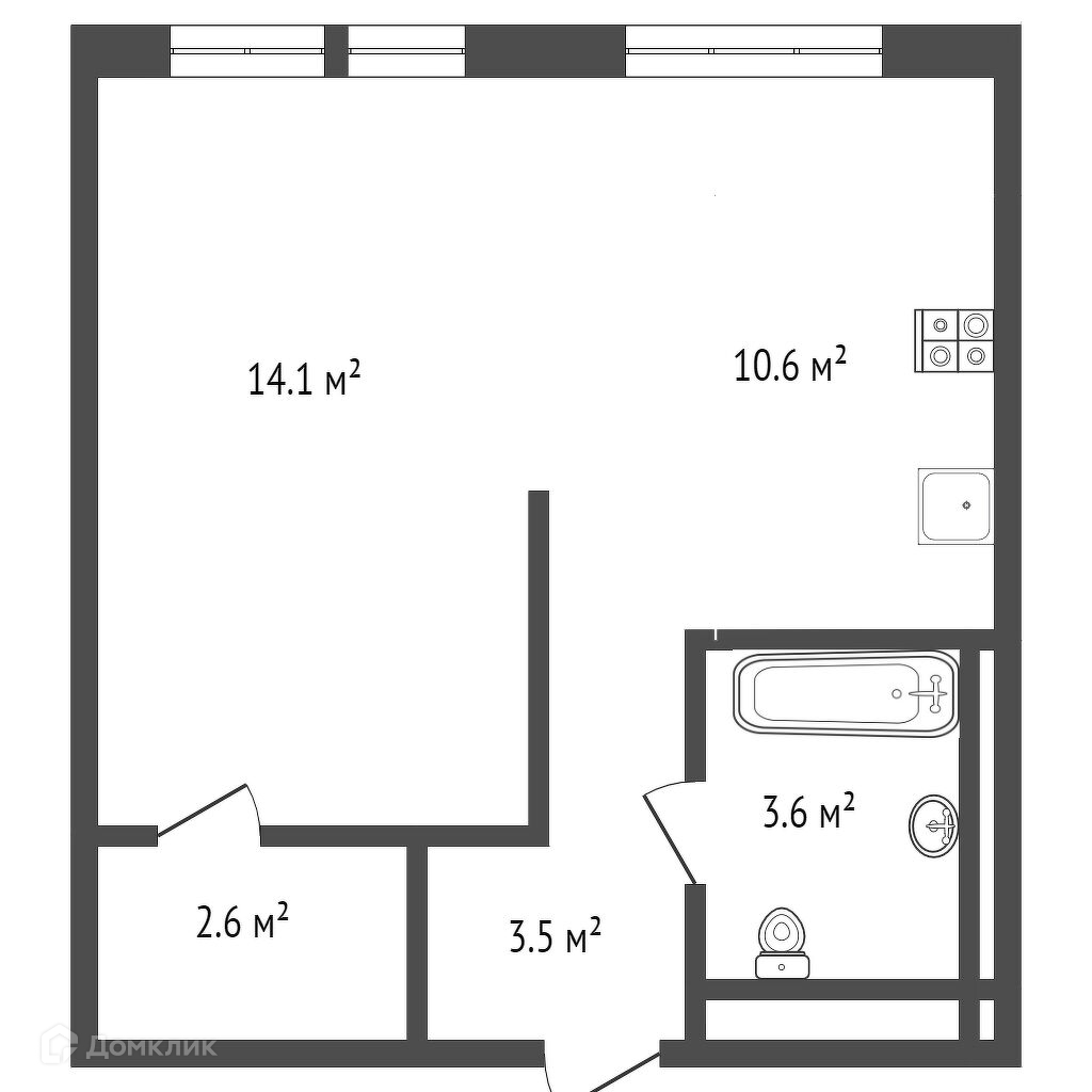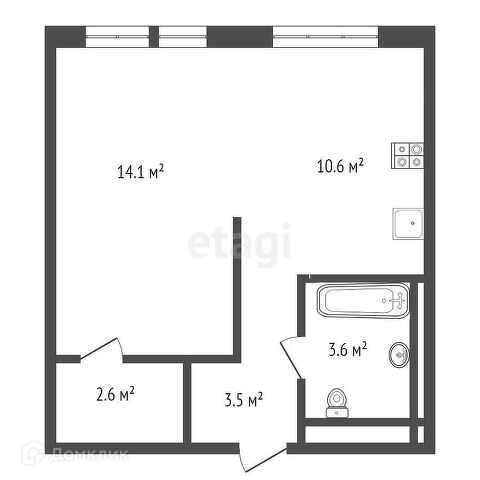 Общая площадь 34.4 м2