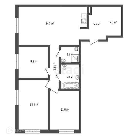 Общая площадь 78.5 м2