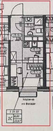 Общая площадь 22.7 м2