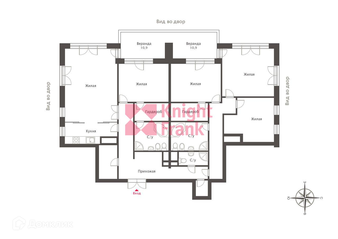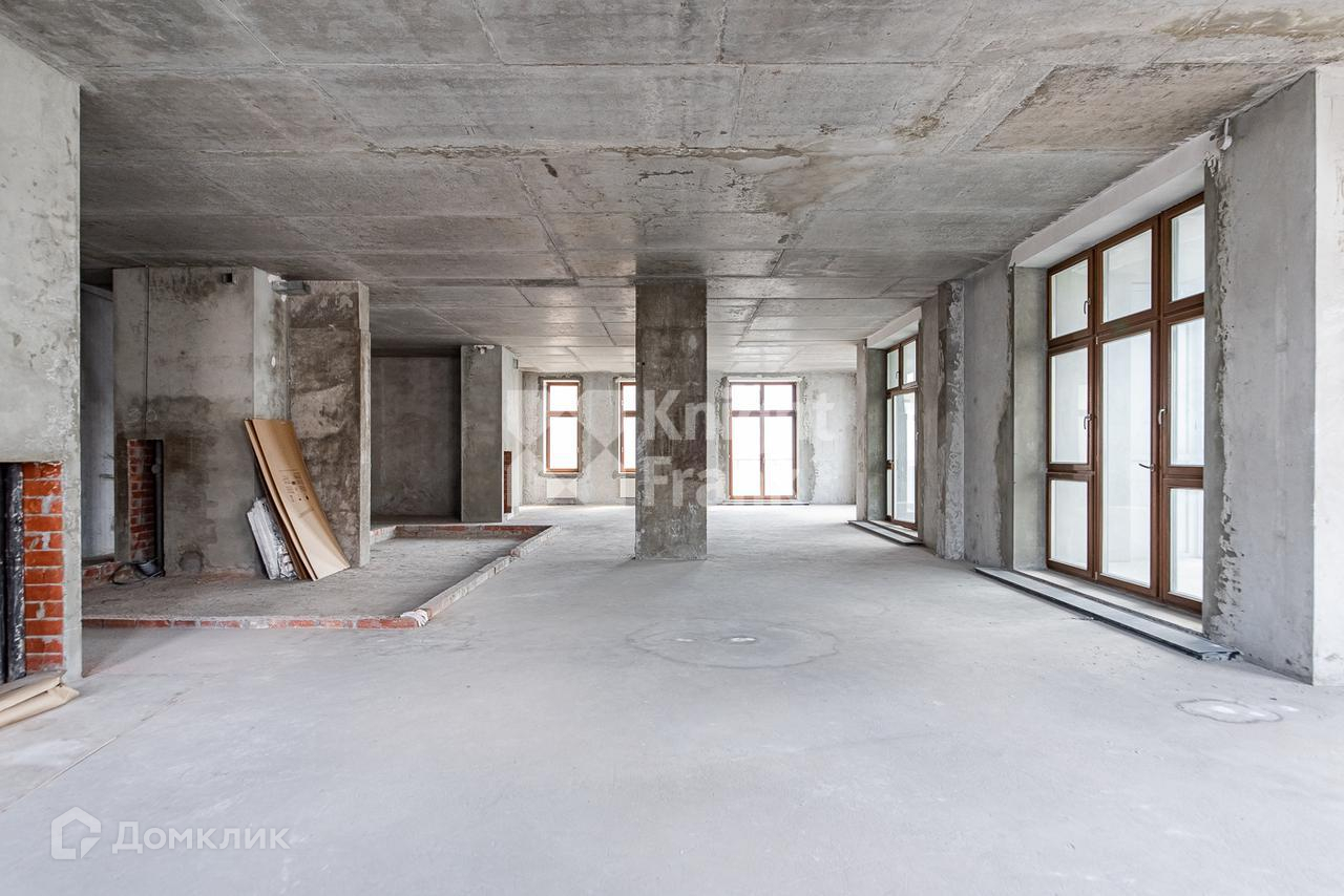Площадь и количество окон позволяют спланировать до 4 спален с собственными ванными, просторную гостиную с зоной кухни. Есть просторный балкон.