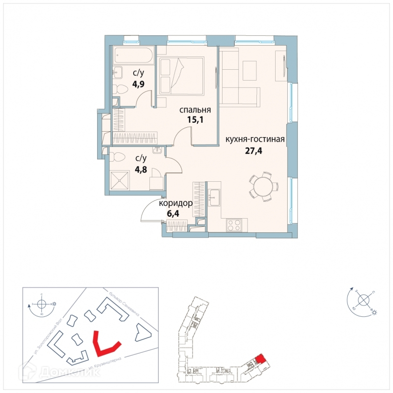 Общая площадь 58.6 м2