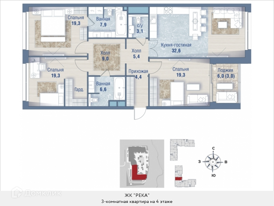 Продаю 3-комн. квартиру площадью 131.4 кв.м., без отделки, на 4 этаже из 10 в жилом комплексе премиум-класса "РЕКА". Квартира - распашонка, здесь нет проходных комнат, зато очень много света. Квартира идеальна для бoльшой ceмьи. В квартире одна лоджия, два совмещенных и один раздельный санузел. Высота потолков 3.65 м.