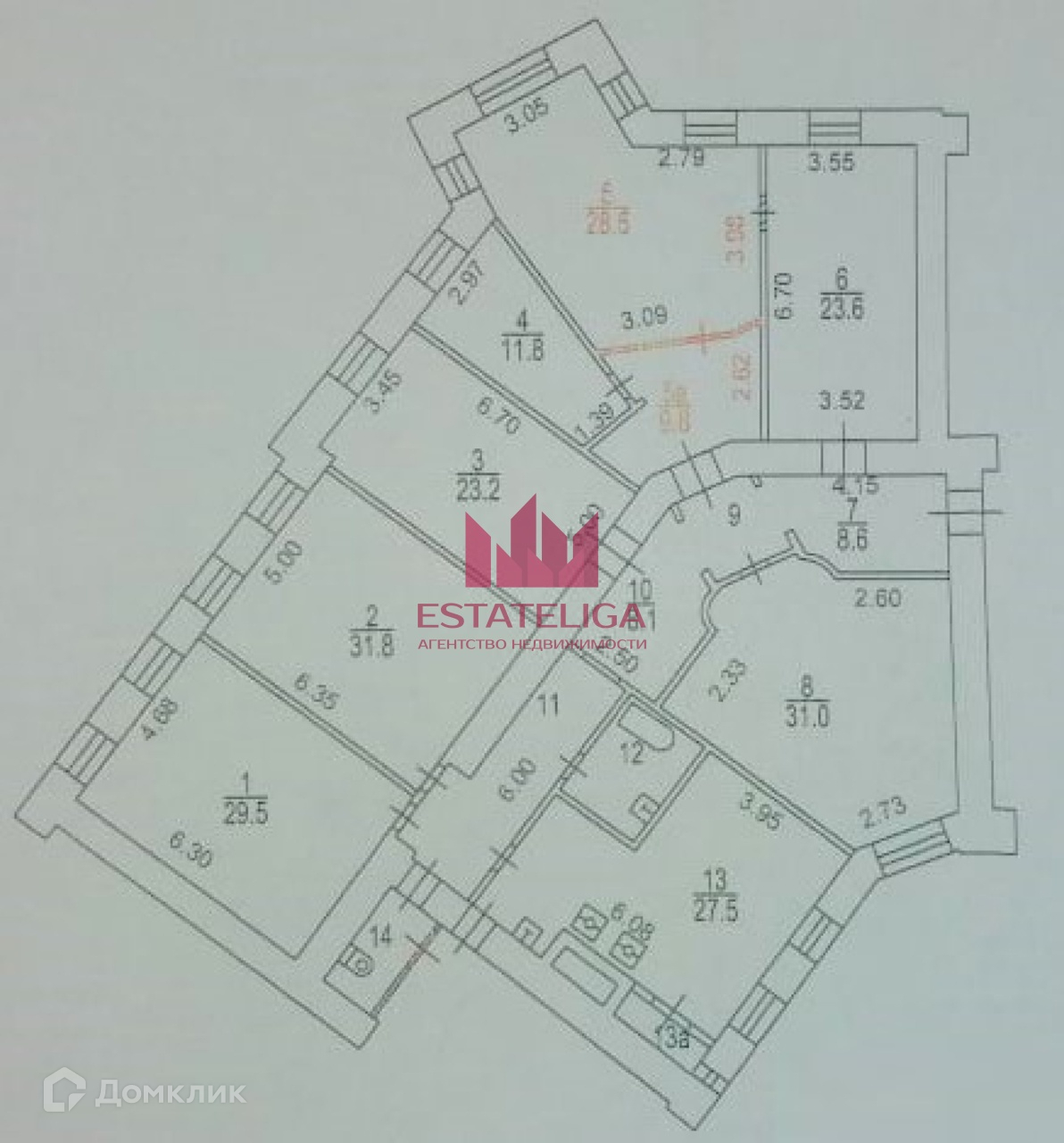Функциональная планировка включает в себя : кухню, шесть комнат, площадью: 31,8-29,5-28,5-23,6-23,2-11,8 м2, в каждой есть окно, что позволяет организовать в них пространство любого назначения, два с/у 5,7-3,5 м2, кладовка, широкие коридоры. Высота потолков 3,7м., большие окна, действующий дровяной камин немецких мастеров, по всей квартире установлены кондиционеры. На полу- паркет из массива дуба. Окна выходят на три стороны - во двор, в "колодец" и на тихий Фролов переулок. Дополнительно, к выходу в парадный подъезд есть два других, на чёрные лестницы. Закрытая территория,