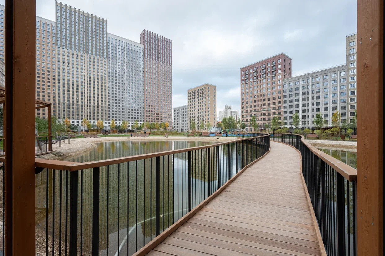 Свой пруд, магазины и кафе.