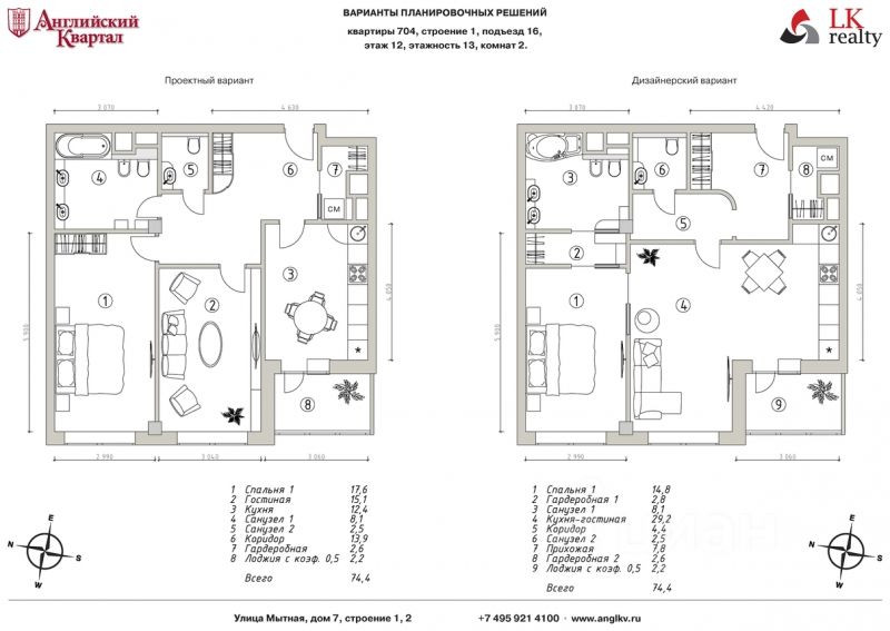 Общая площадь 74.4 м2