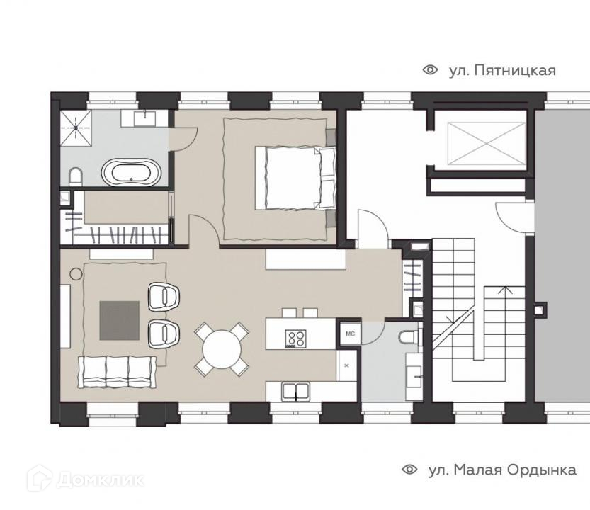 2-комнатная квартира, 75 м2, этаж 2 / 6, на продажу в Москве, Большой Ордынский переулок, 4с4