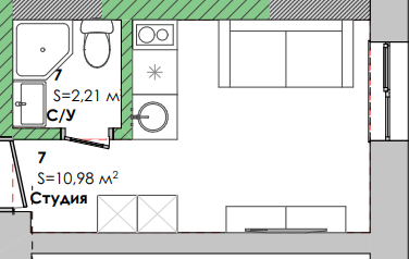 Стоимость студии указана с учетом предчистового ремонта