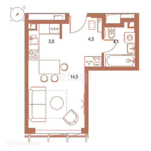 Общая площадь 26.3 м2