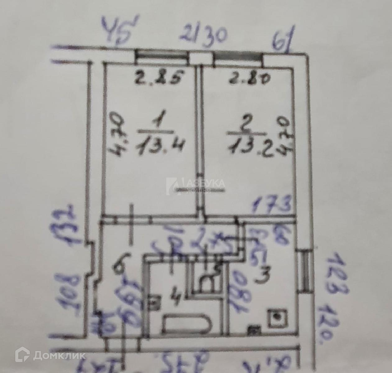 Общая площадь 43.4 м2