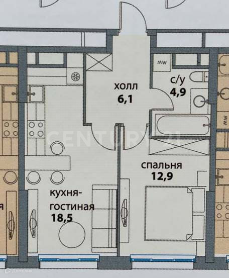 Жилая площадь 12.9 м2