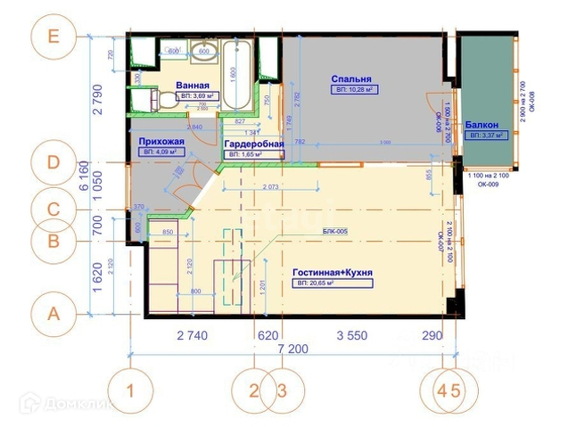 Общая площадь 45 м2