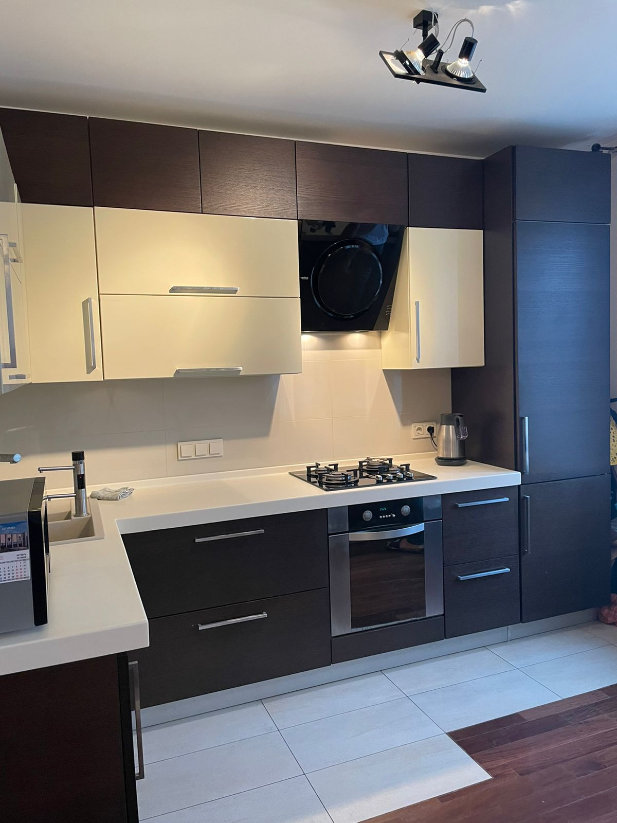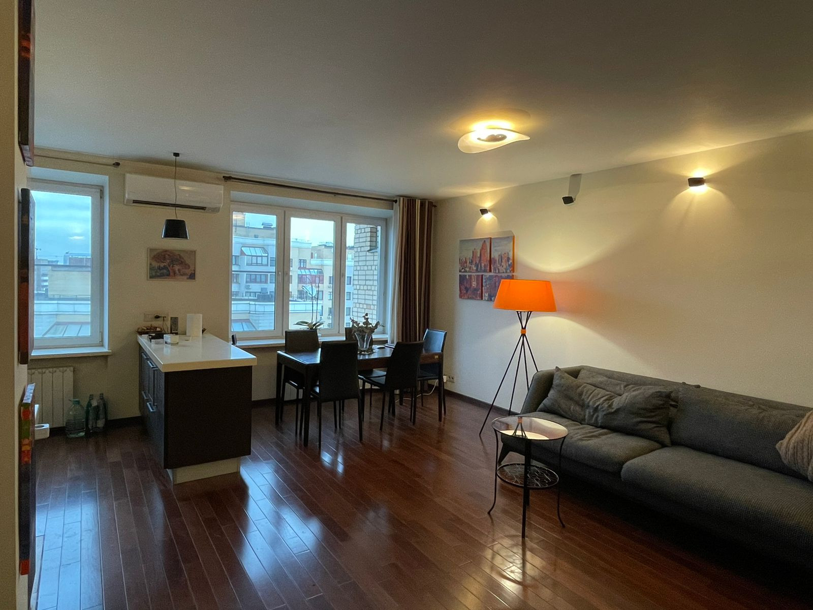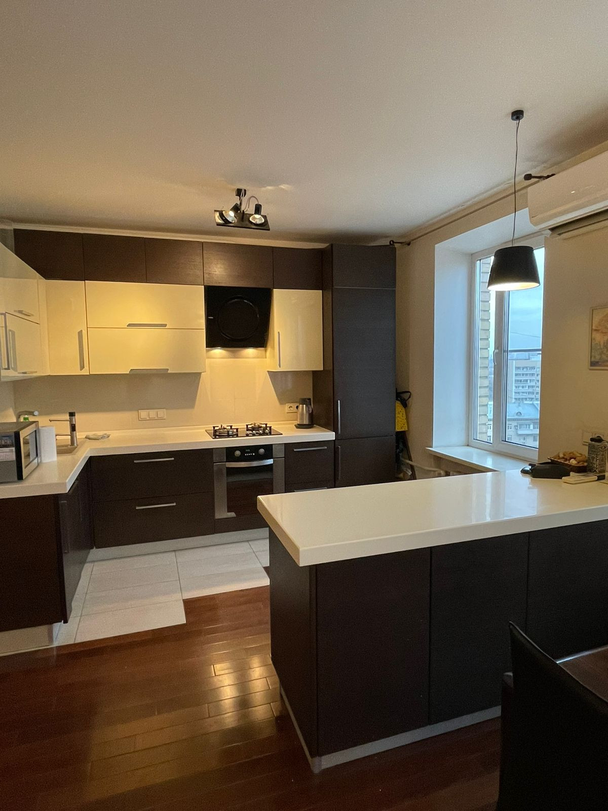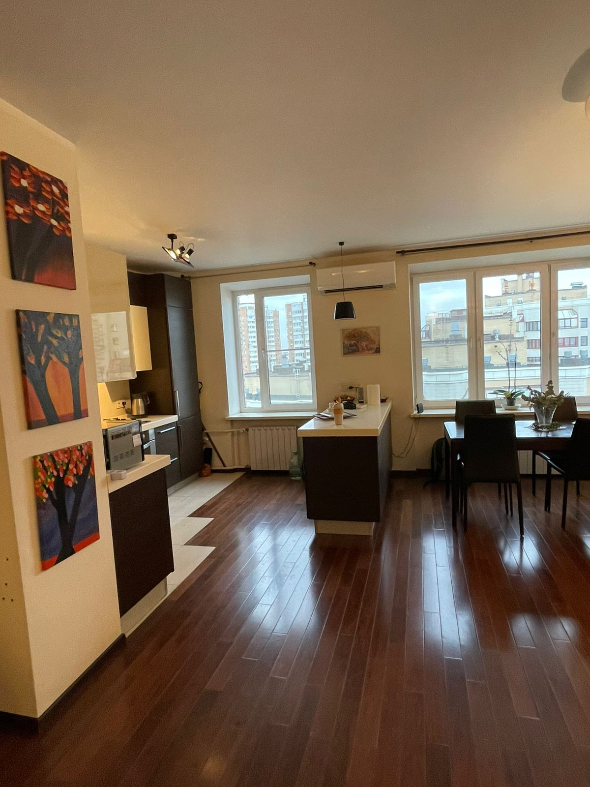 В квартире выполнен качественный ремонт, с использованием дорогих материалов, полы массив бразильского ореха. Встроенная кухня с бытовой техникой немецкого качества, в санузлах итальянская плитка, кондиционеры Daikin с подачей свежего воздуха с улицы, весь свет итальянских производителей.
