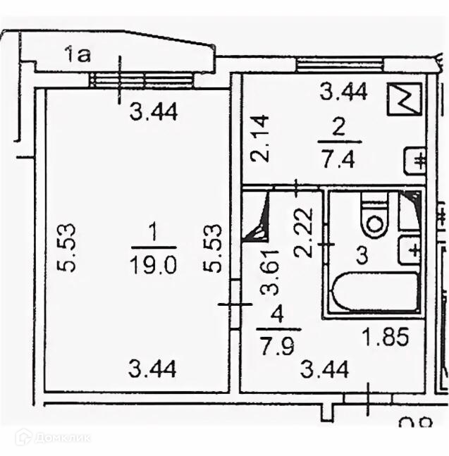 Общая площадь 37.6 м2