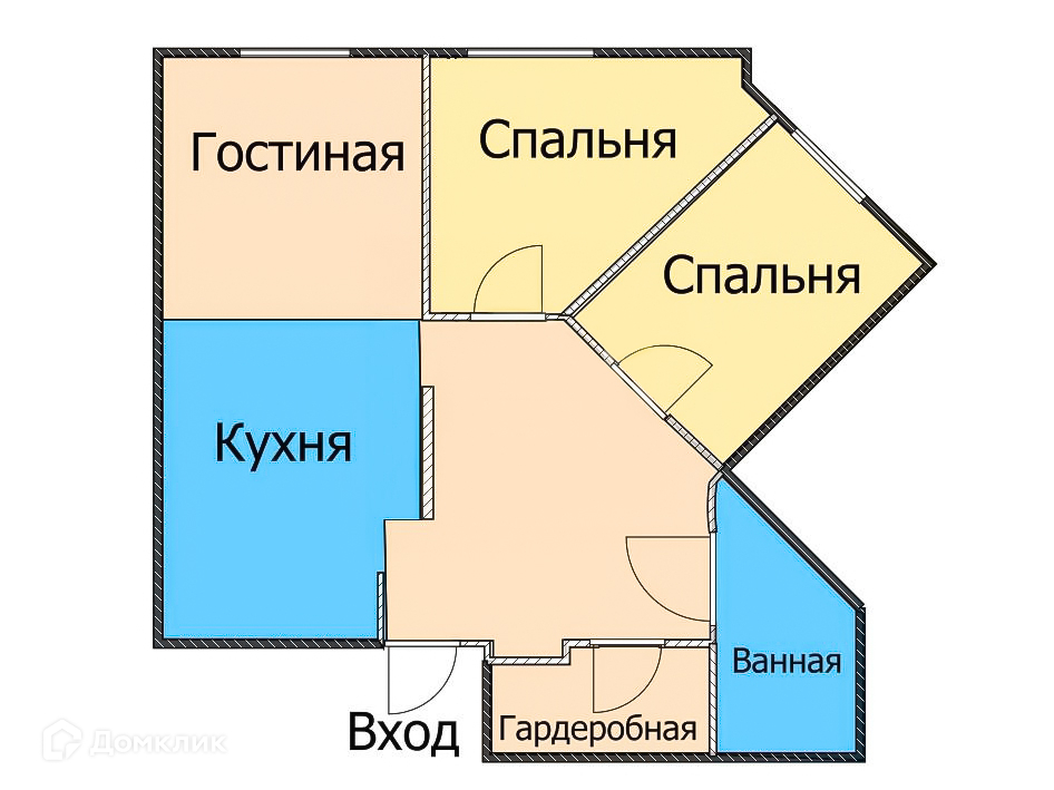 Планировкой предусмотрено: кухня совмещенная с гостиной, 2 изолированных спальни, санузел с ванной и душевой кабиной, холл, большая гардеробная с постирочной, лоджия в одной из спален и французский балкон.