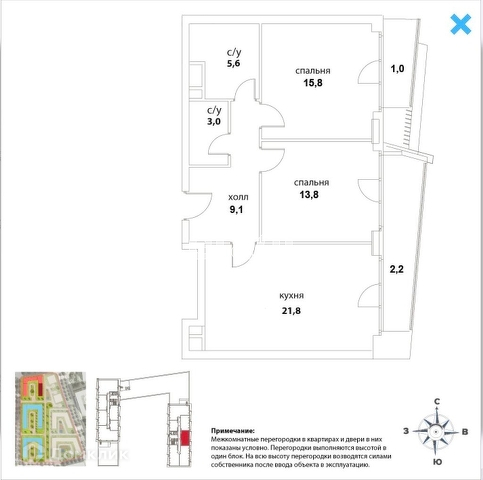 Количество комнат 2