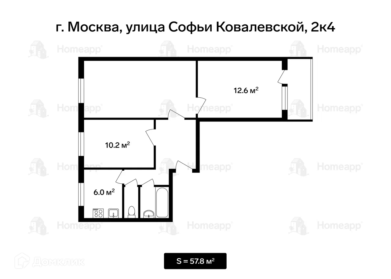3-комнатная квартира, 57.8 м2, этаж 4 / 9, на продажу в Москве, улица Софьи Ковалевской, 2к4
