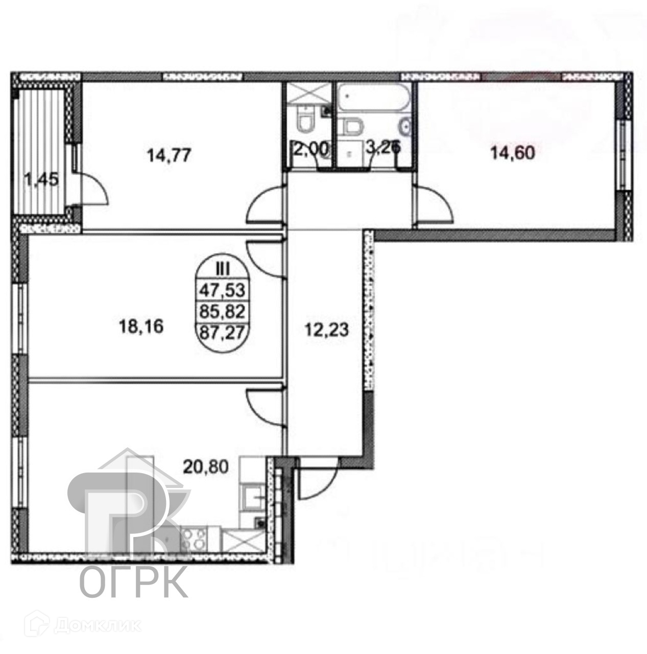 Общая площадь 86.3 м2