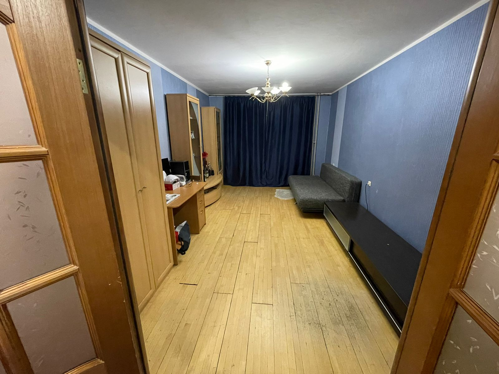 Установлен кухонный гарнитур. Бытовая техника. С/у раздельный.