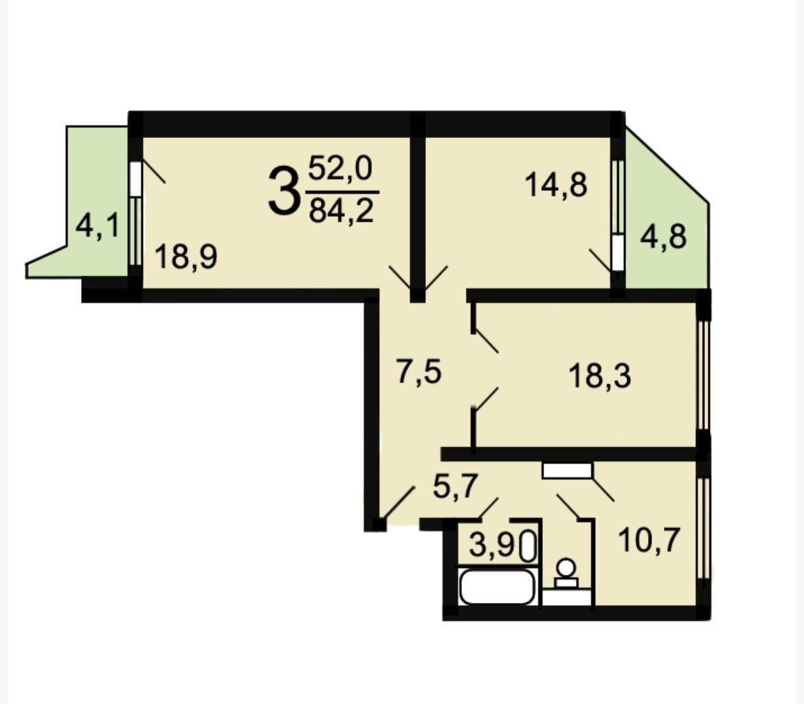 3 комнатная квартира 84.9 кв.м. в г. Москва по ул. Весенняя д. 4. Квартира расположена на 2 этаже 17 этажного панельного дома серии П44Т 2003 года постройки. Имеется технический этаж. Три изолированные комнаты 18.9; 14.8 и 18.3 кв.м. Кухня 10,7 кв.M.