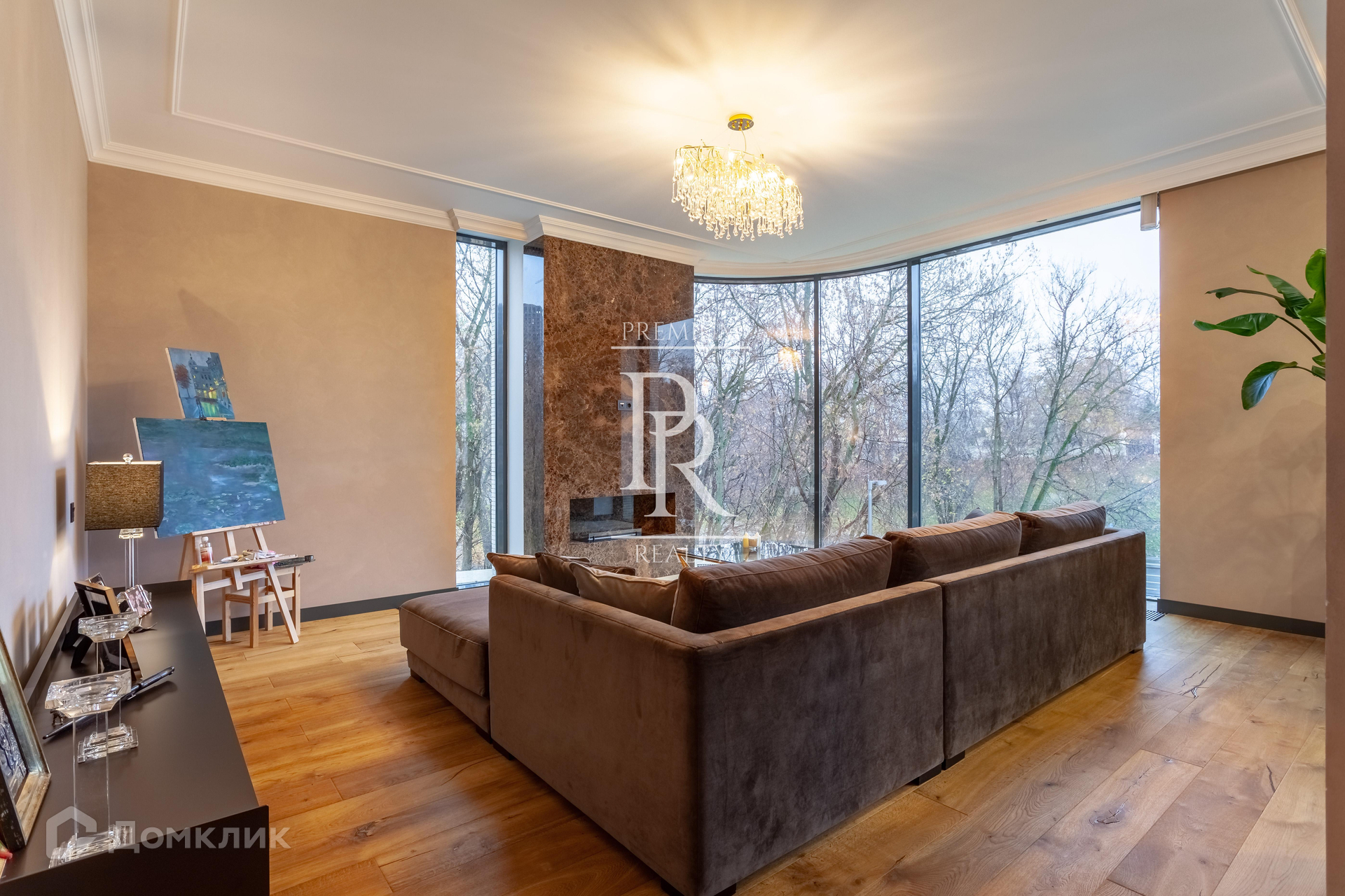 В гостиной расположен камин Planika с пультом управления в натуральном мраморе имперадор дарк . Итальянская кухня фирмы Cesar,мраморная столешница .Техника Kuppersbusch. В гостиной электро -карниз-Германия.