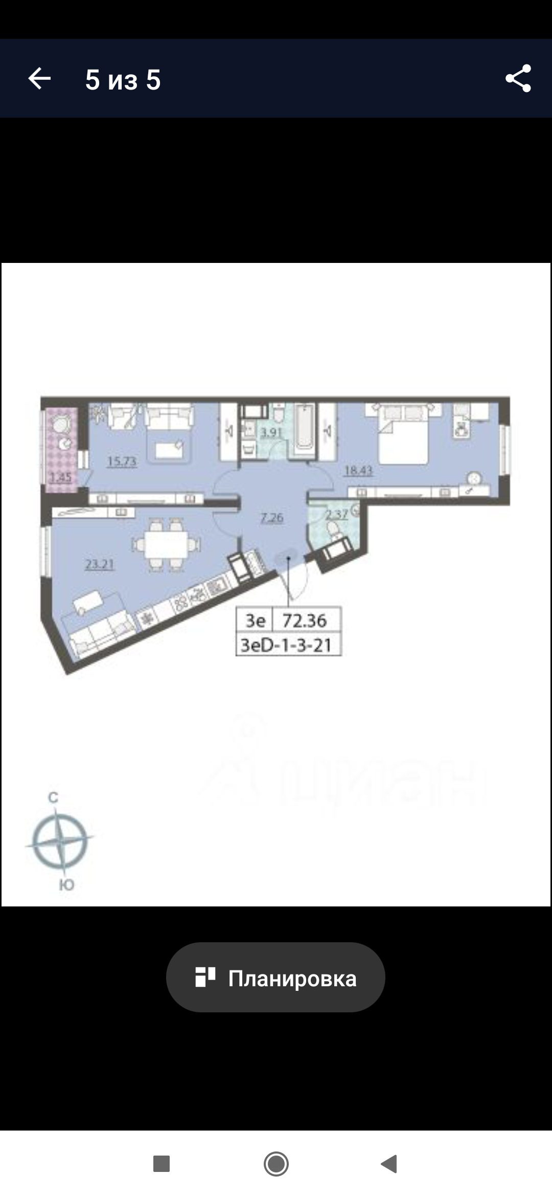 Общая площадь 72 м2