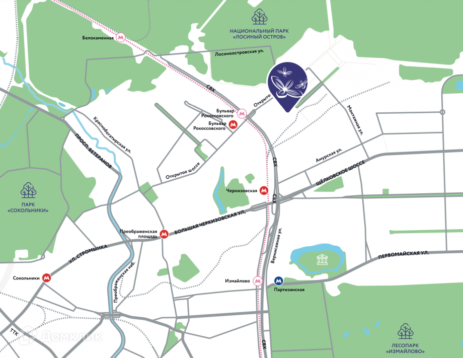 ЖК расположен в 300 метрах от парка Лосиный остров.