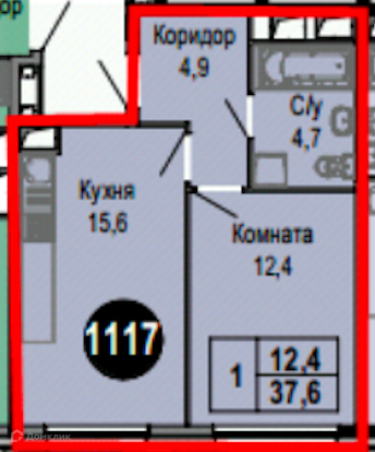 Жилая площадь 12.3 м2