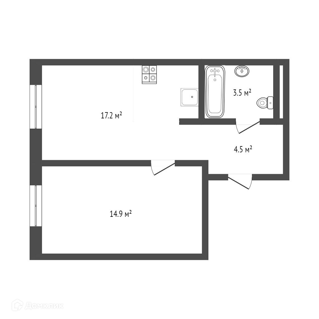 - Комната: 14,9 и 11,2 кв. м.;