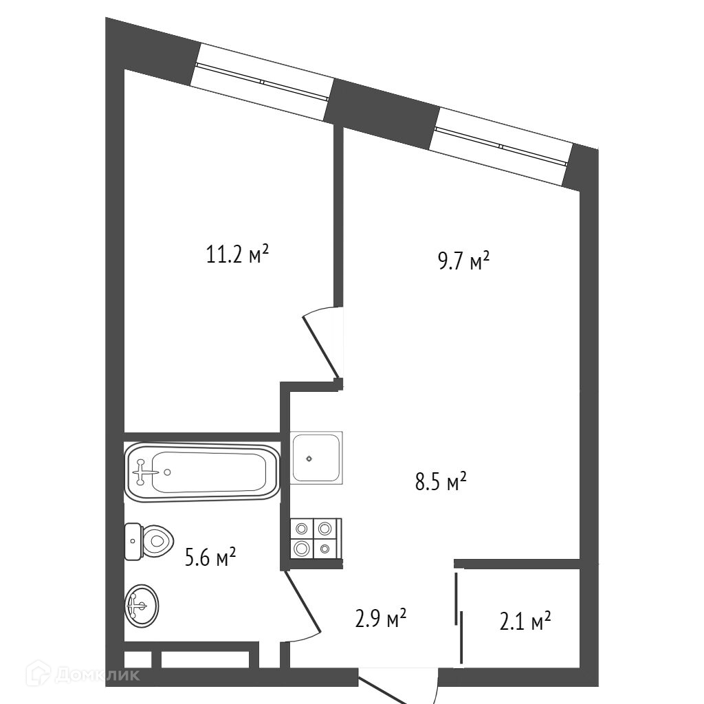 Функциональная планировка: кухня-гостиная, изолированная спальня есть место под гардеробную.