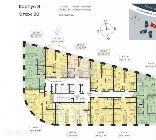 1-комнатная квартира, 40.2 м2, этаж 20 / 26, на продажу в Москве, Нагатинская набережная, 10Ас3