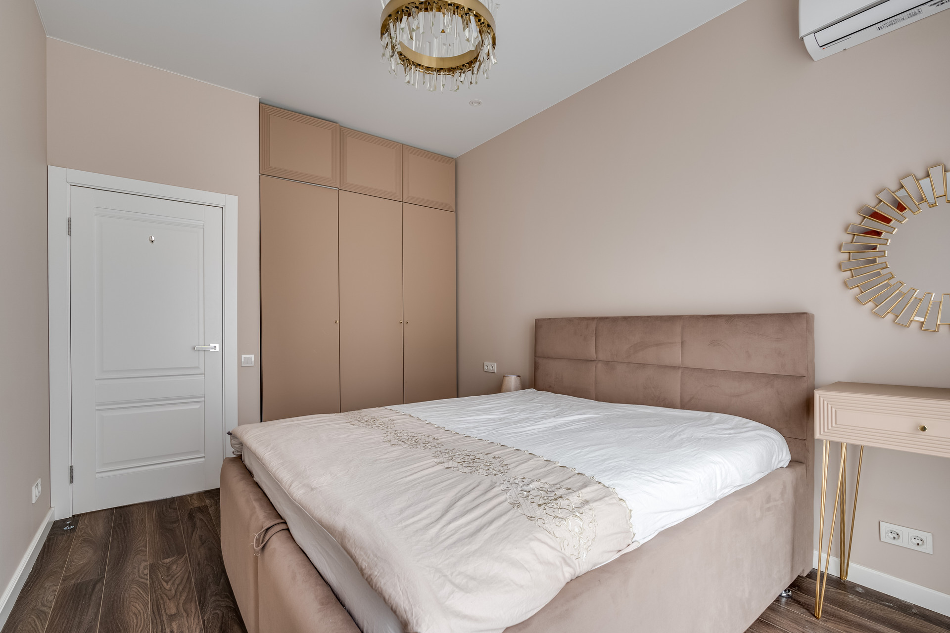Два санузла,  два балкона, просторная гардеробная. Кухня-гостиная, спальня, детская. Квартира продается с мебелью и техникой. Не требует дополнительных вложений.  Свободная продажа. Один взрослый собственник. Полная стоимость в Договоре Купли-Продажи.