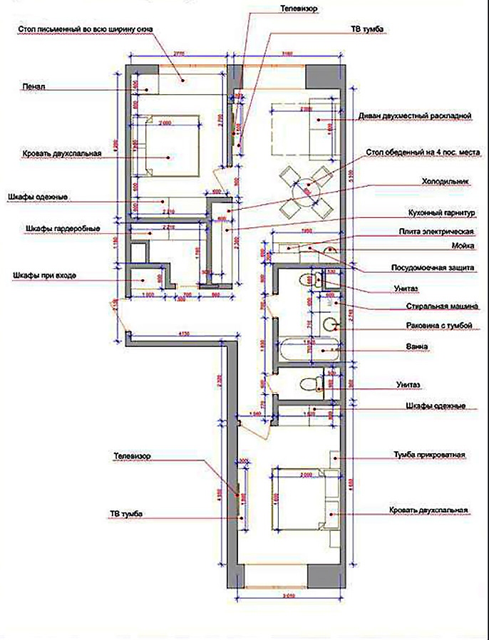 Квартира-распашонка ( формат "Евротри"). Функциональная планировка.  Сделан дизайн проект.