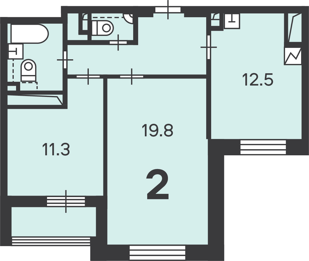 Количество комнат 2