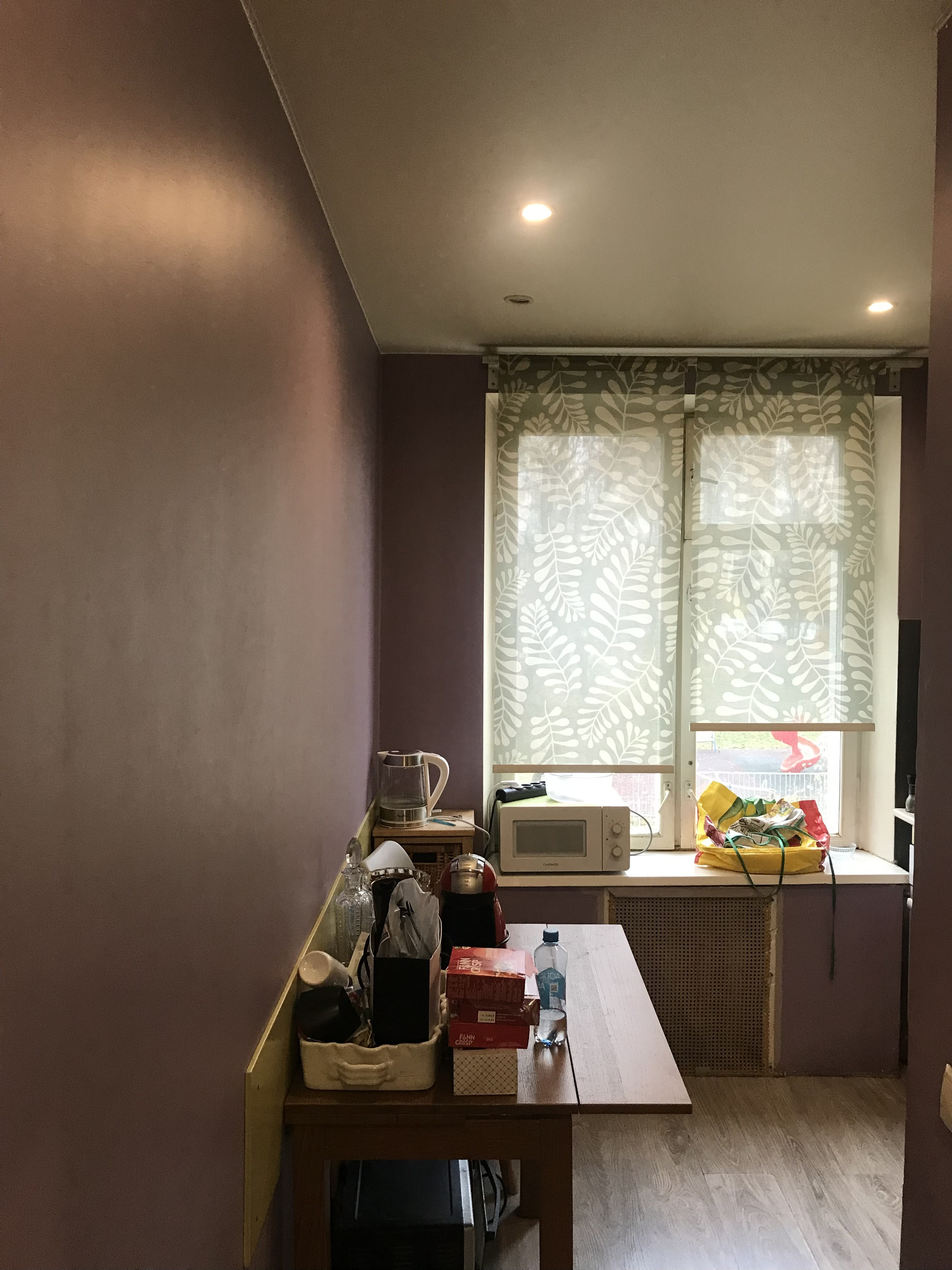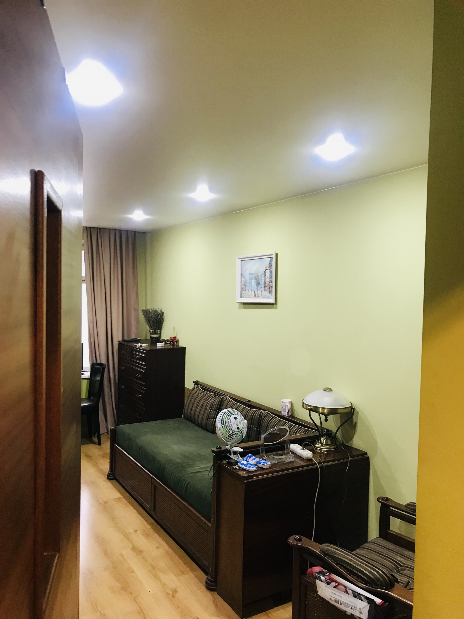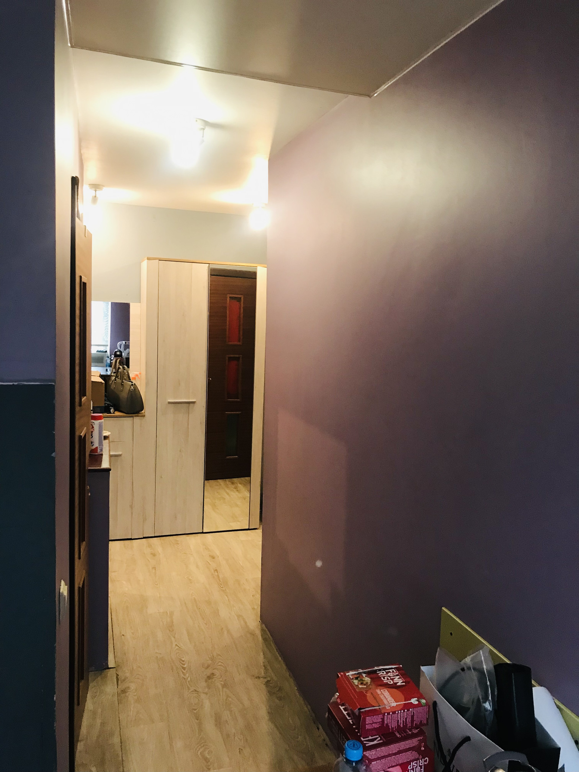 Цветовое решение интерьера выполнено в теплых подтонах и акцентных графитных оттенках ,стены выровнены под покраску ,подвесные потолки с грамотно проработанной подсветкой ,требуется лёгкая косметика ,которая не займет много ресурсов.