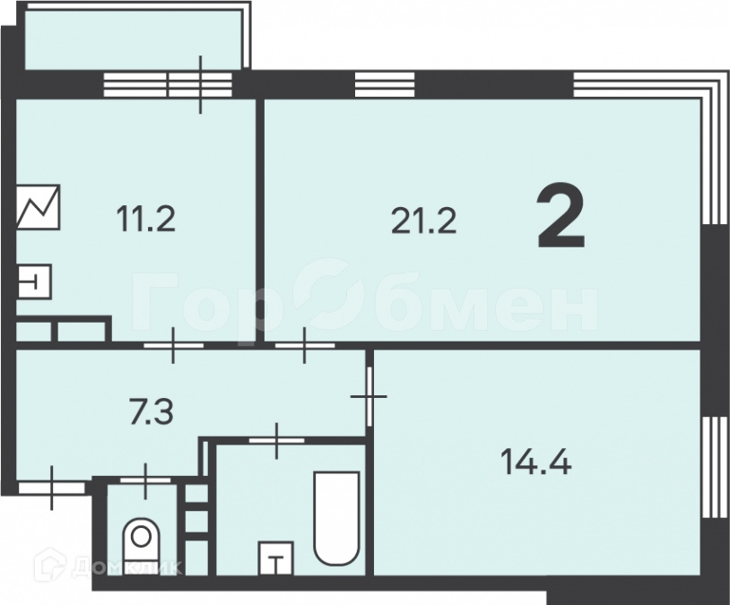 Количество комнат 2
