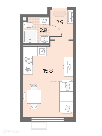 Общая площадь 21.6 м2