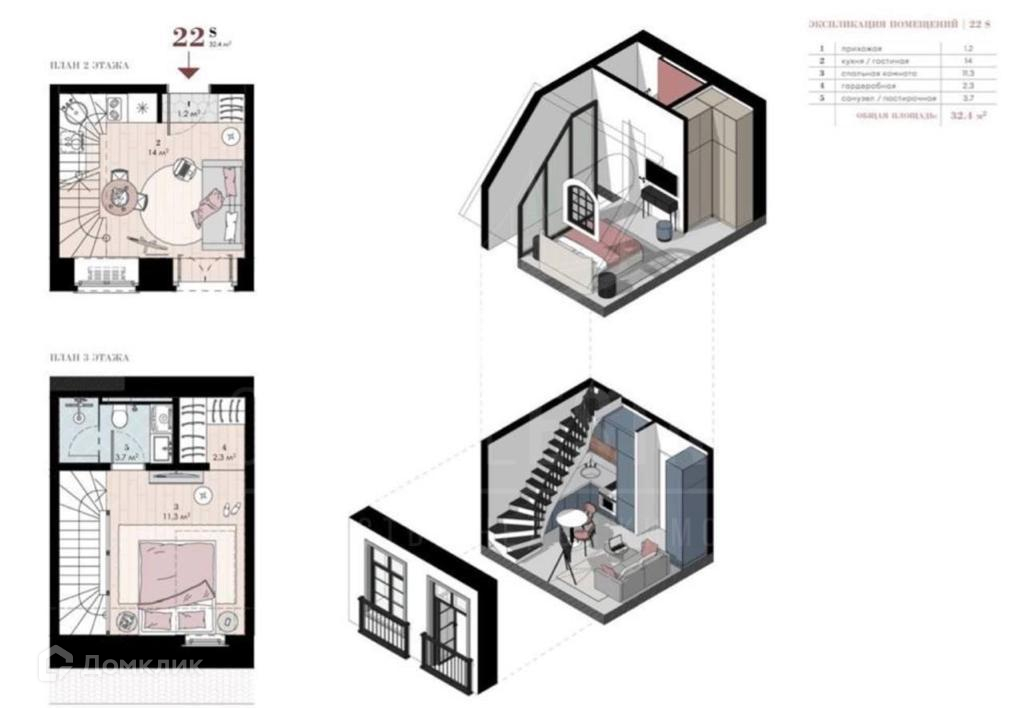 1-комнатная квартира, 35 м2, этаж 1 / 2, на продажу в Москве, 2-й Павелецкий проезд, 4