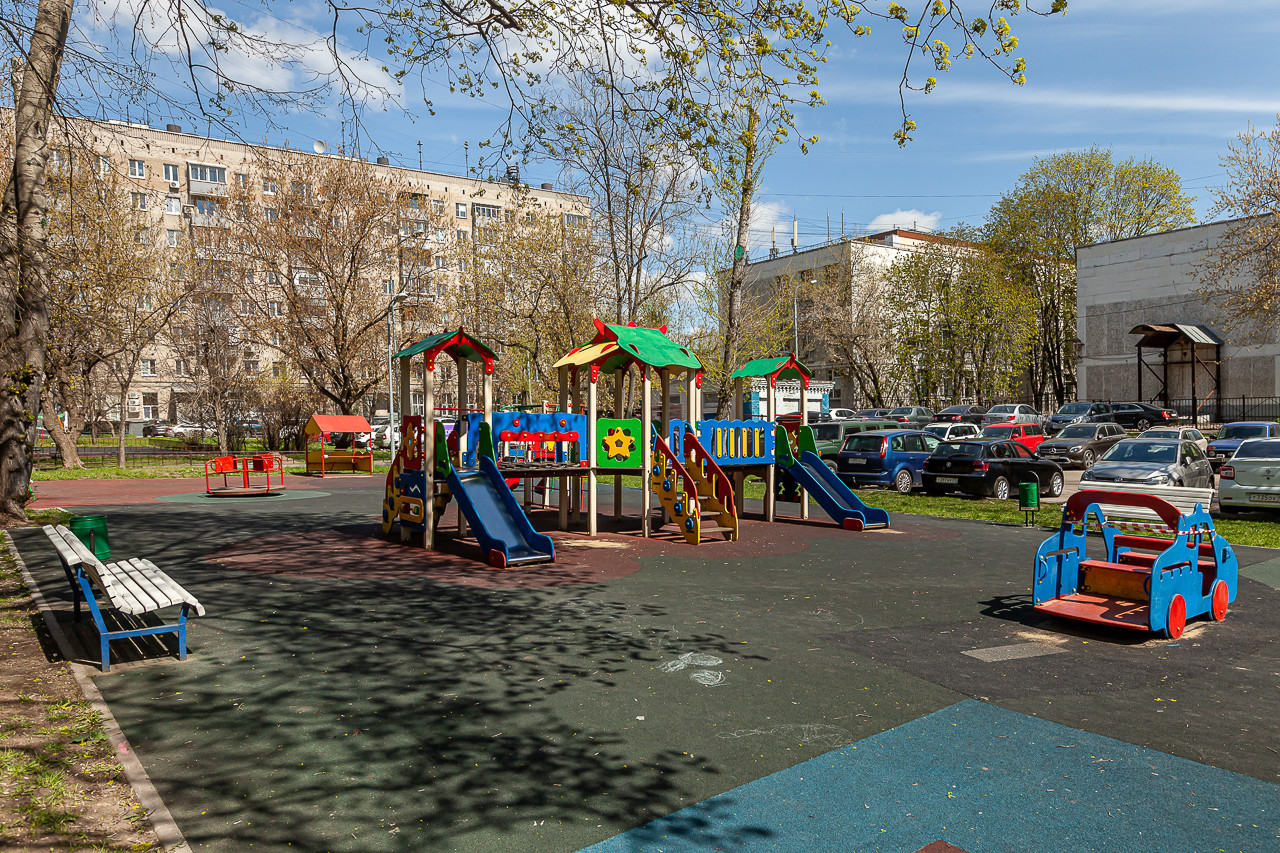 Квартира находится в тихом, зеленом районе. Вся инфраструктура в пешей доступности: магазин Дикси, торговый центр, школа 2107, детский сад 37, фитнес-центр.