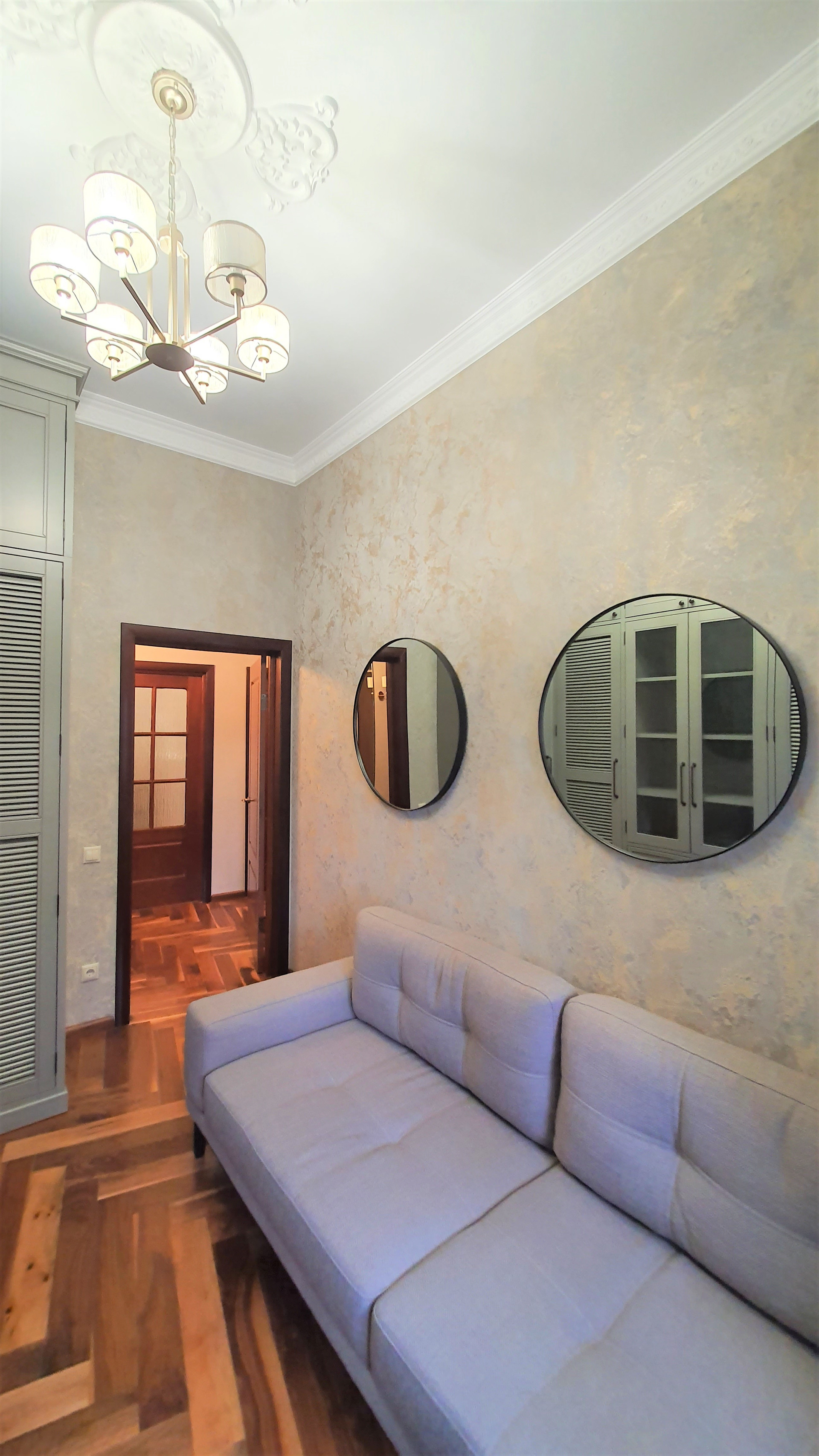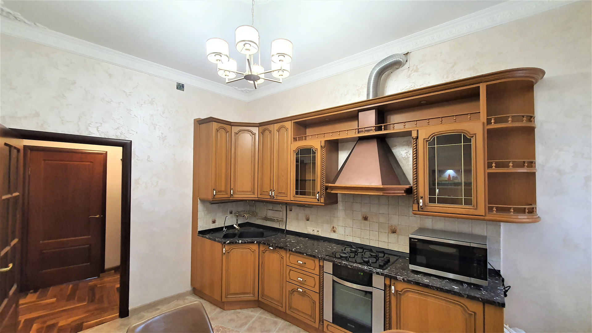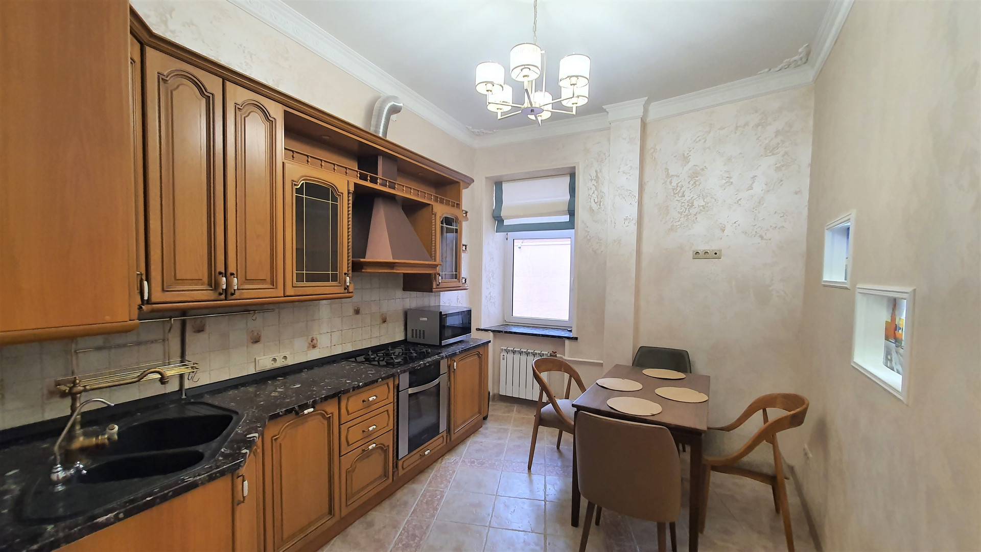 Светлая квартира с высокими потолками (3,20 м). Новый капитальный ремонт с заменой всех инженерных систем, никто не жил, использованы дорогие качественные материалы в отделке (плитка Versace, английская сантехника и др.), живопись. Кухня от итальянского производителя Verona (натуральный массив), паркет – американский орех, столешница и подоконники – натуральный мрамор. Вся мебель и техника остается новому собственнику (стиральная машина, посудомоечная машина, варочная панель и духовой шкаф, вытяжка, микроволновая печь, кондиционер).