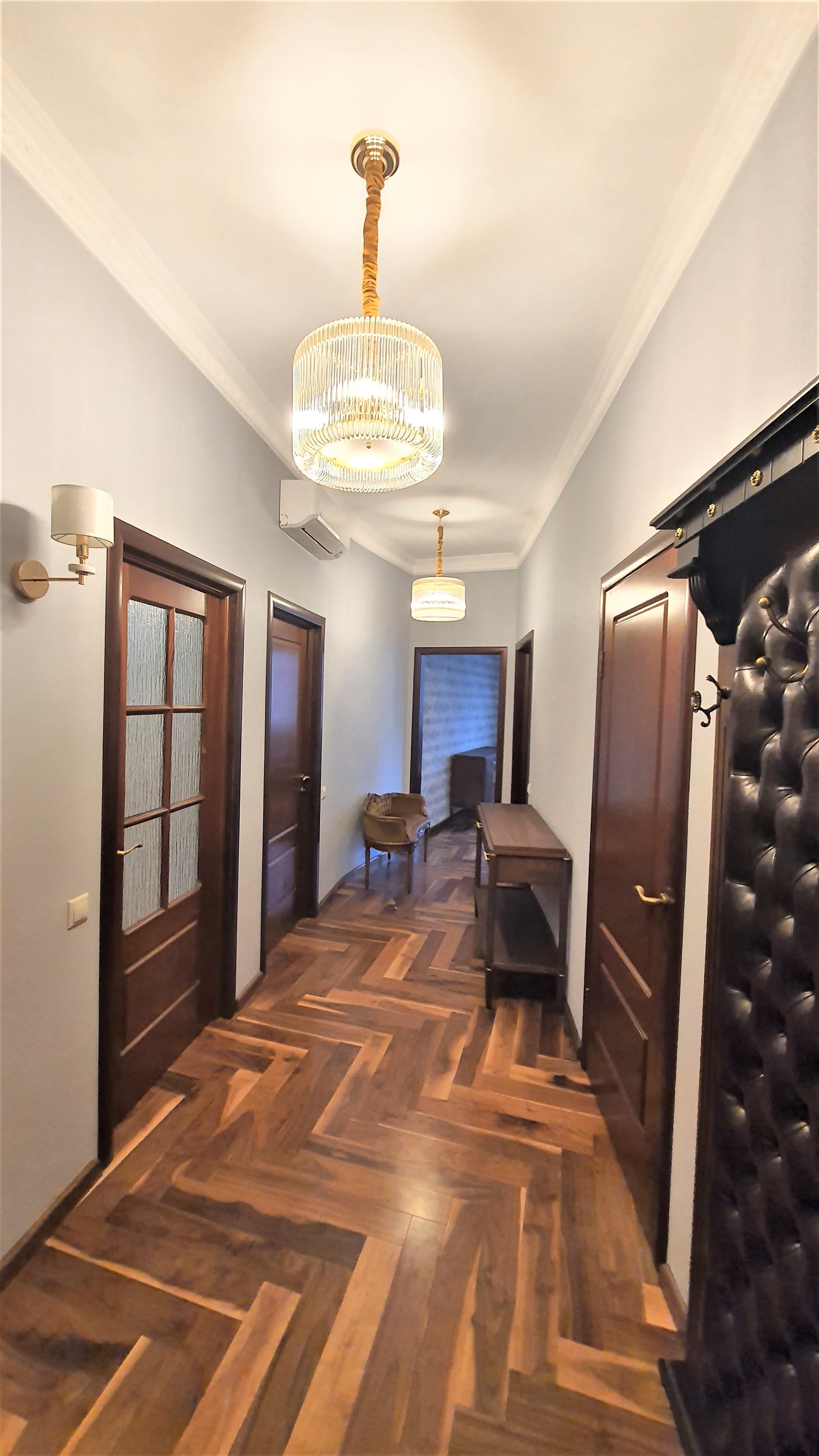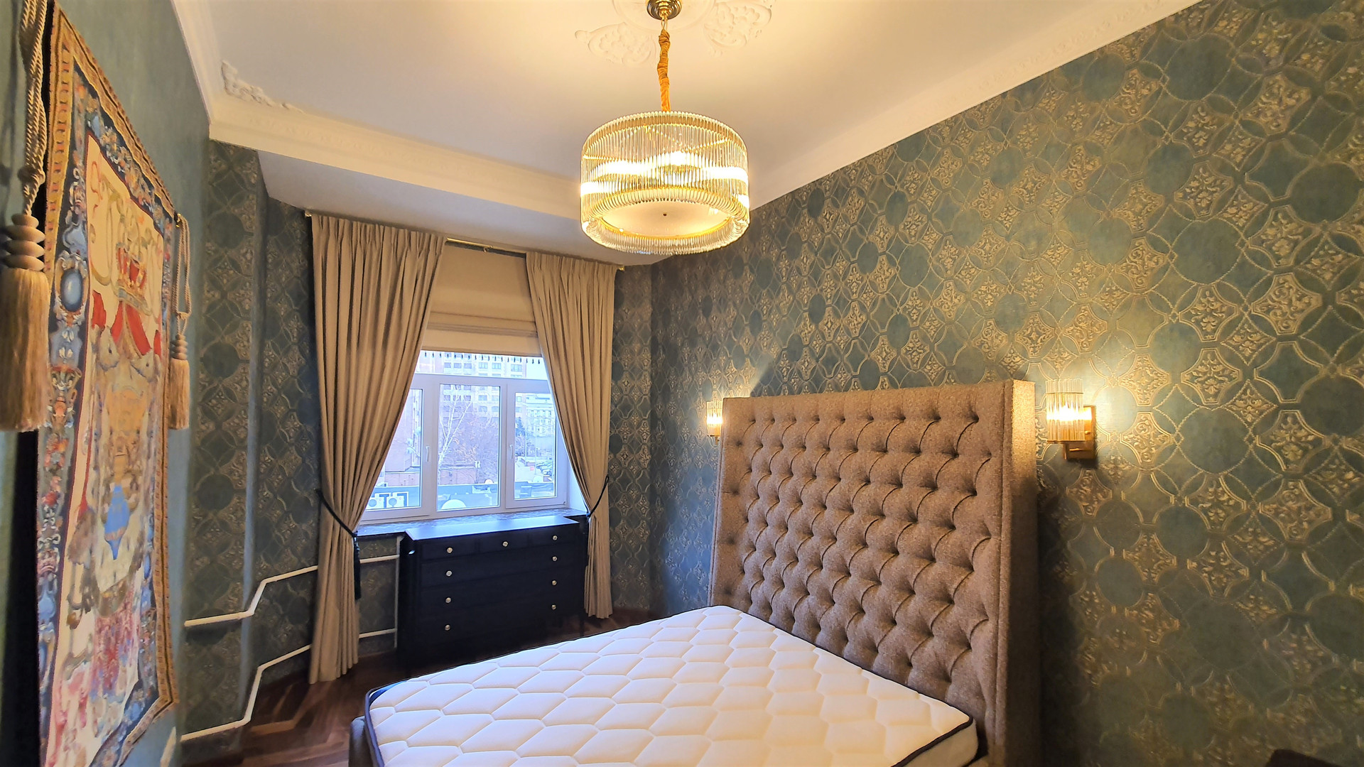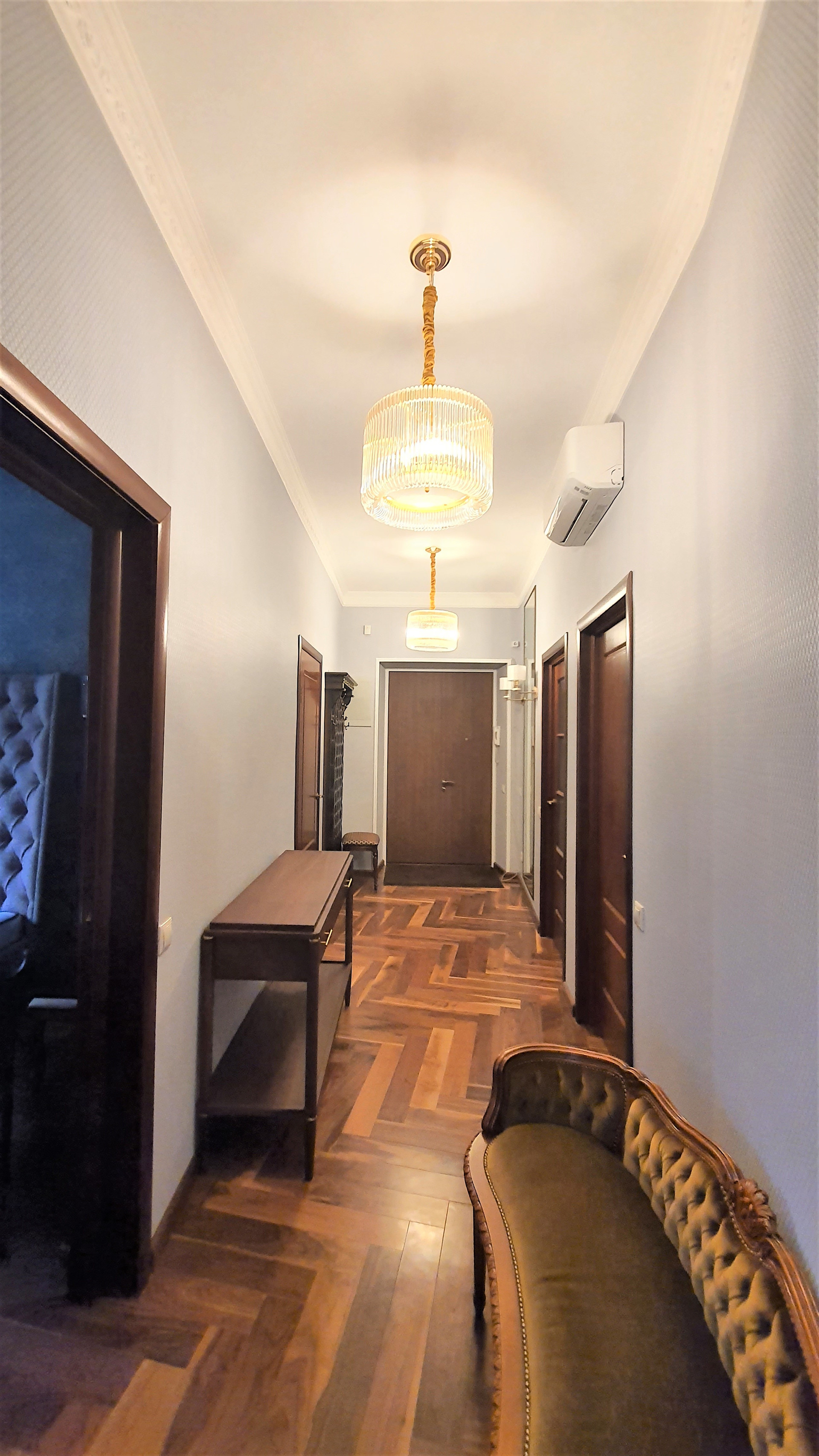 Светлая квартира с высокими потолками (3,20 м). Новый капитальный ремонт с заменой всех инженерных систем, никто не жил, использованы дорогие качественные материалы в отделке (плитка Versace, английская сантехника и др.), живопись. Кухня от итальянского производителя Verona (натуральный массив), паркет – американский орех, столешница и подоконники – натуральный мрамор. Вся мебель и техника остается новому собственнику (стиральная машина, посудомоечная машина, варочная панель и духовой шкаф, вытяжка, микроволновая печь, кондиционер).