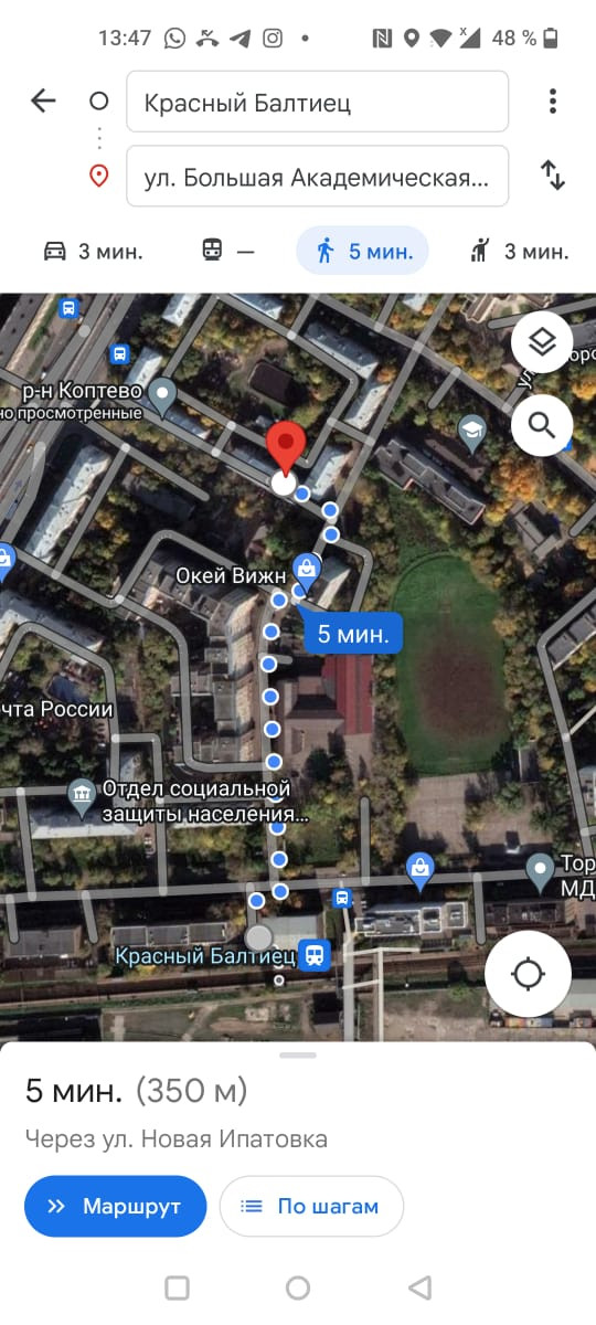 До МЦД Красный Балтиец - 5 минут пешком, м. Сокол, м.Войковская, м. Балтийская - 17-20 мин пешком