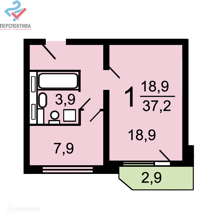 Общая площадь 37.2 м2